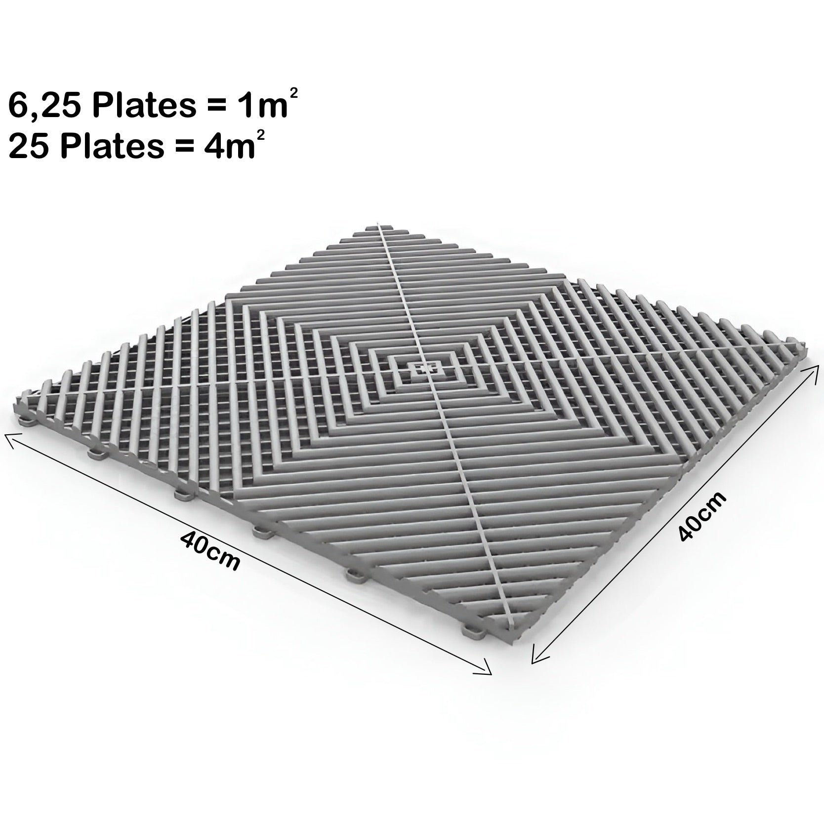 Maße Bodenplatte: 400 x 400 x 18 mm